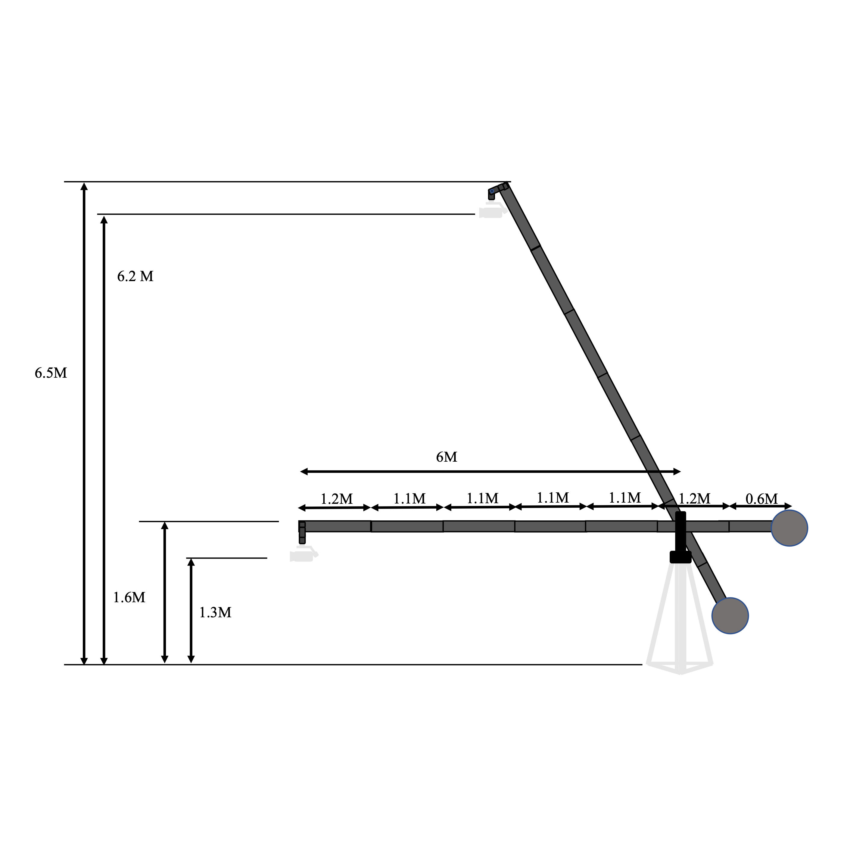 地上高約6.5mまで上がる強靭で太いカーボン製ポールジブ